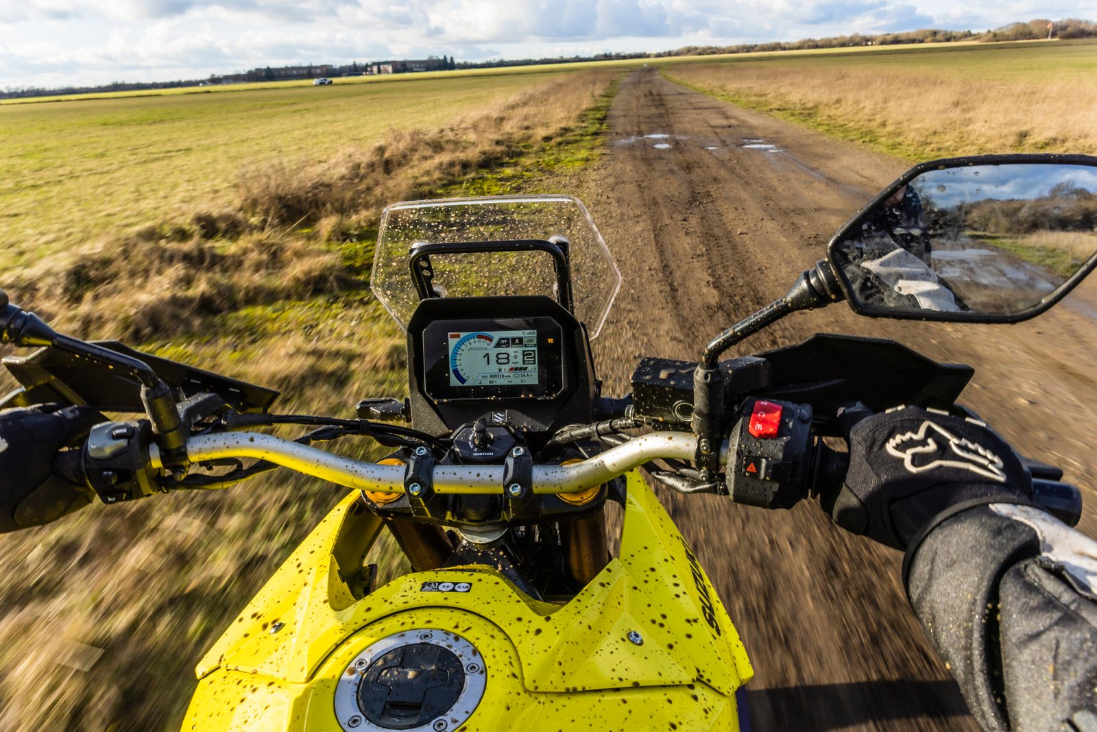 Controle de Tração (Suzuki Traction Control System - STCS): Possui múltiplos níveis de intervenção e a opção de ser desligado para uso off-road.